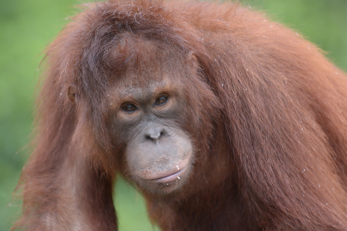 Enrichment keeps the orangutans active and encourages problem solving with food treats often hidden in various food puzzles. Wigly is in excellent health and has a good appetite, eating all of the food offered to him.