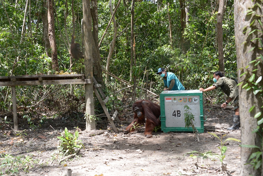 In the most recent incident Carlos suffered a wound to his back and the veterinary team decided that he needed treatment at the veterinary clinic at Nyaru Menteng. Carlos spent three weeks at the clinic and recovered well. He has now been released back onto Kaja Island and he was released well away from Agro’s territory. The island is 108 hectares. Generally, orangutans stick to certain areas of the island rather than travelling all around it so it is hoped that these two males will now keep their distance from each other. BOS Foundation staff will be monitoring the situation and will intervene if needed.