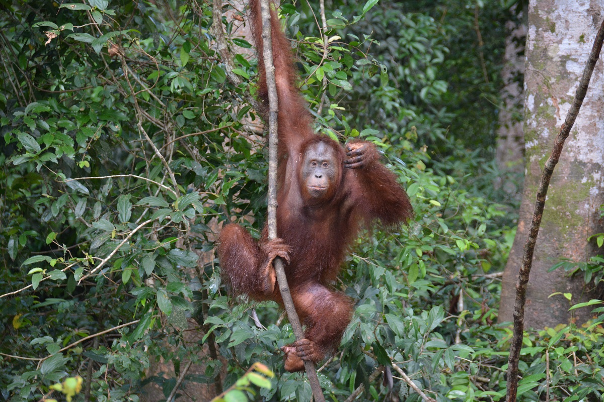 You may remember in August last year, the orangutans on the BOS Foundation pre-release islands had to be moved back to the Nyaru Menteng centre due to the very low water levels around the islands. This included the lovely Meki. When the wet season set in at the end of 2019, the river levels returned to normal around Kaja pre-release island, which was deemed safer than Bangamat Island. Meki was soon transferred to Kaja Island along with other orangutans.