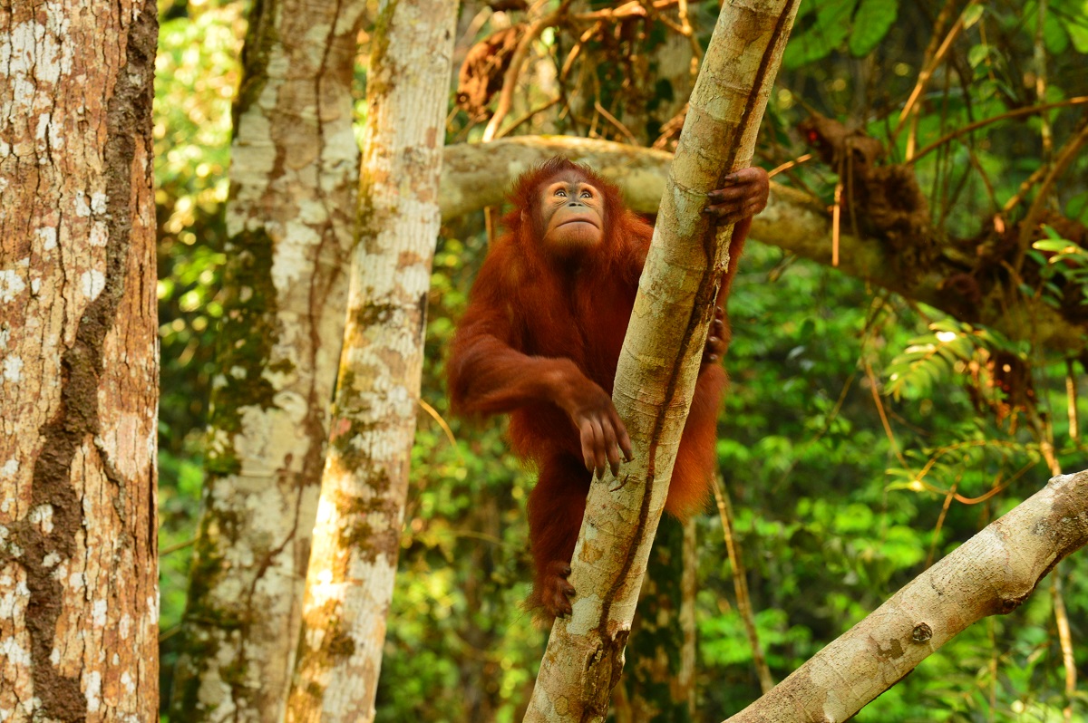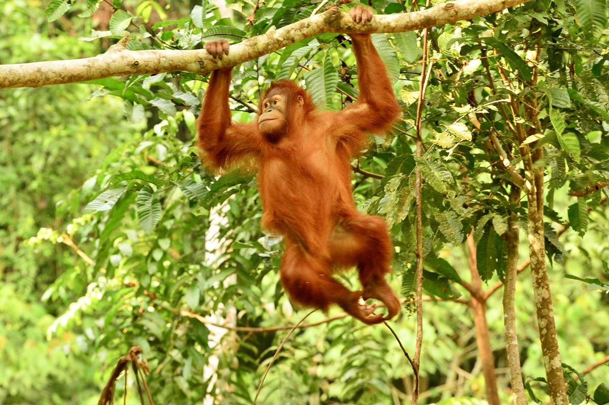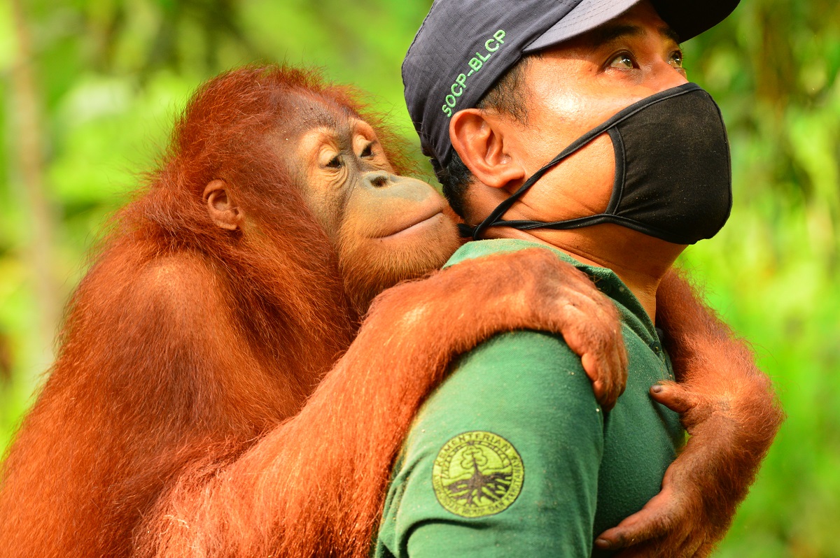 Thankfully, after an eighth month hiatus due to COVID-19 restrictions, Jungle School recommenced in late 2020 at the Bukit Tigapuluh Orangutan Sanctuary in Sumatra. After being in her enclosure for so long, Cece had cold feet about returning to the forest and she refused to join Jungle School for the first time. After some time and gentle coaxing, she was finally convinced to leave the enclosure and head to the forest with the orangutan keeper and other young orangutan adventurers.