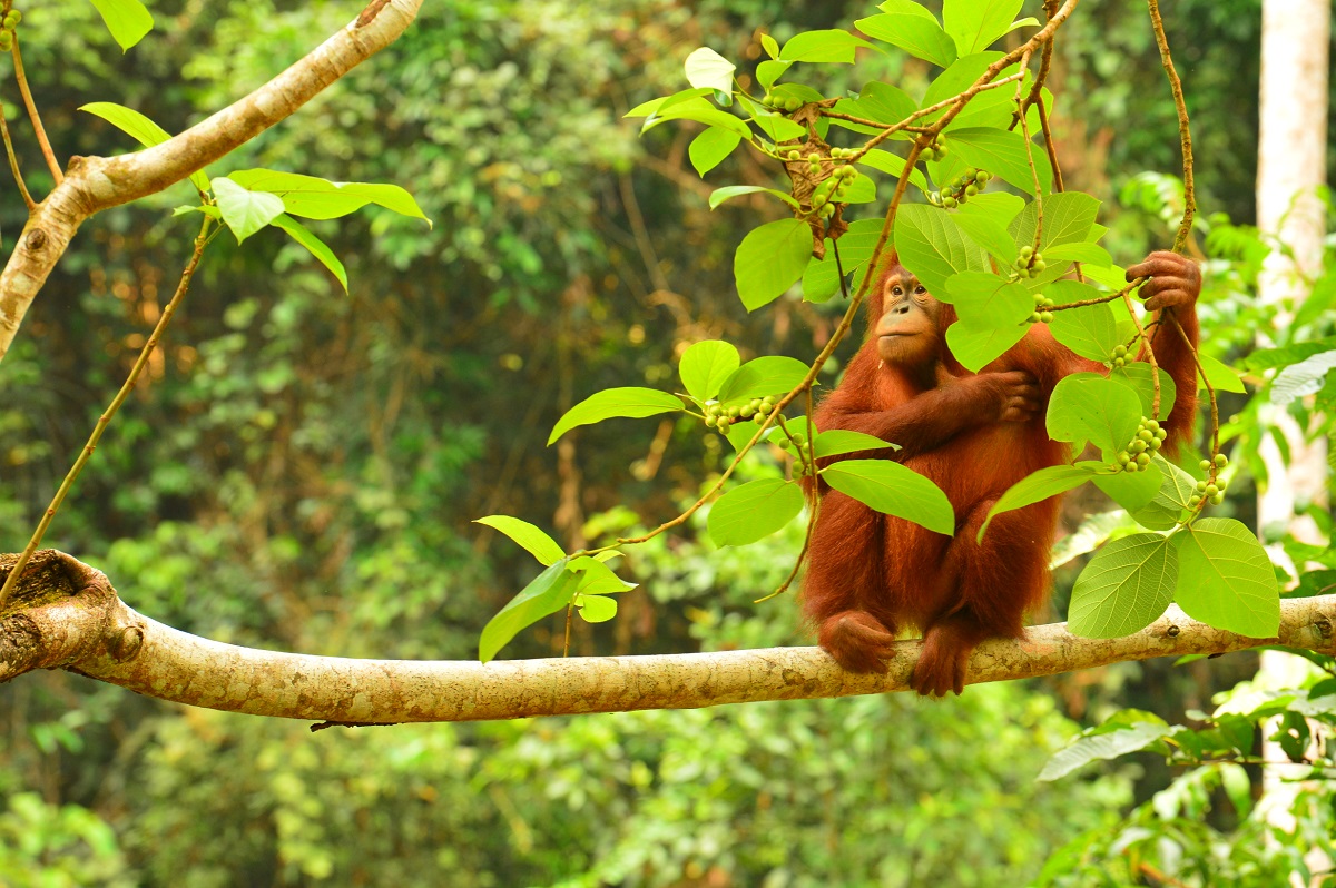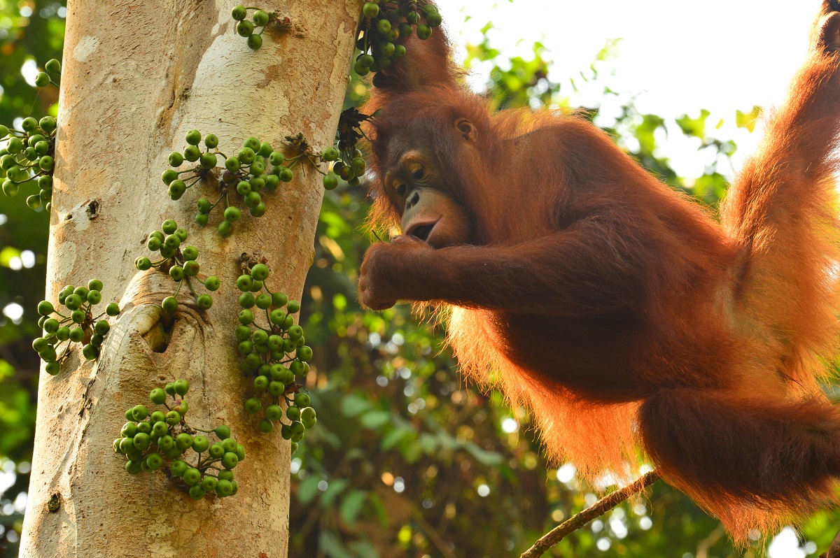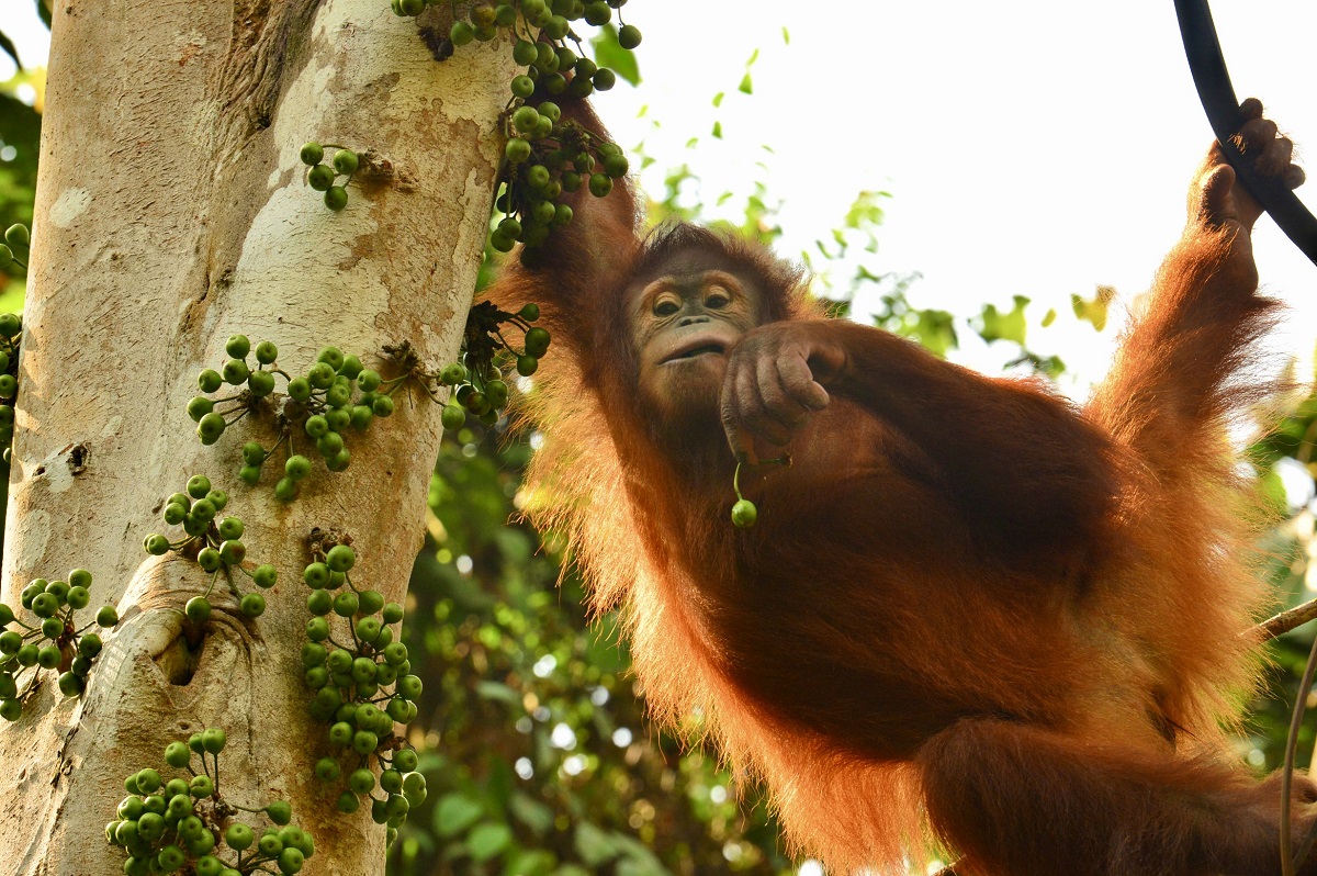 Cece spent most of her time traveling with her friends Rosi and Citrawan. She showed good progress in December when she was observed building nests and her feeding time increased from 10% of her overall daily activity in November to 30% in December. By February her feeding activity increased to 47% and she mostly fed on forest fruits including ficus and liana species. Her favourite fruits are beluduk, ficus, liana and tempening. Cece was observed feeding from 40 different tree species which is excellent. Wild orangutans utilize over 200 food sources in the forest so it’s great to see Cece increasing her diet options.