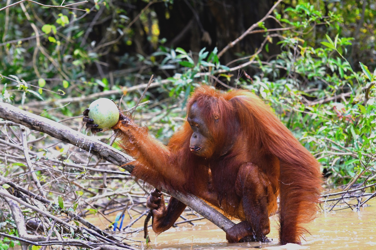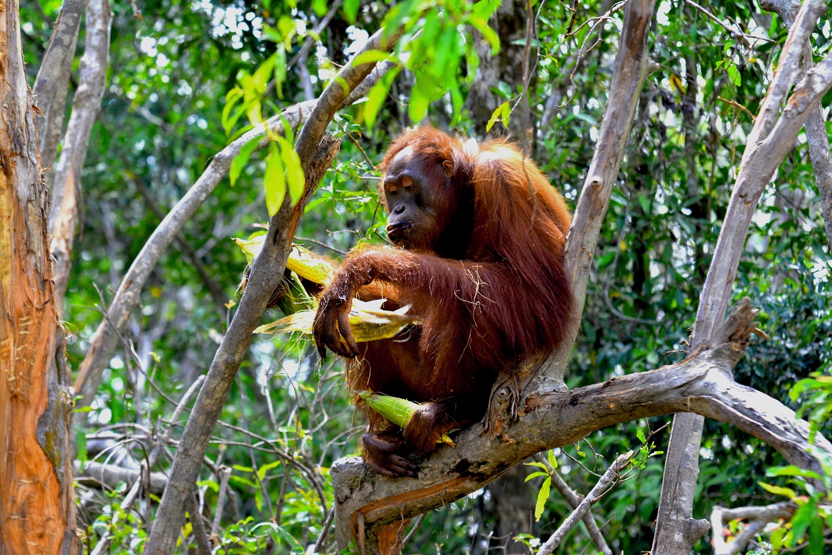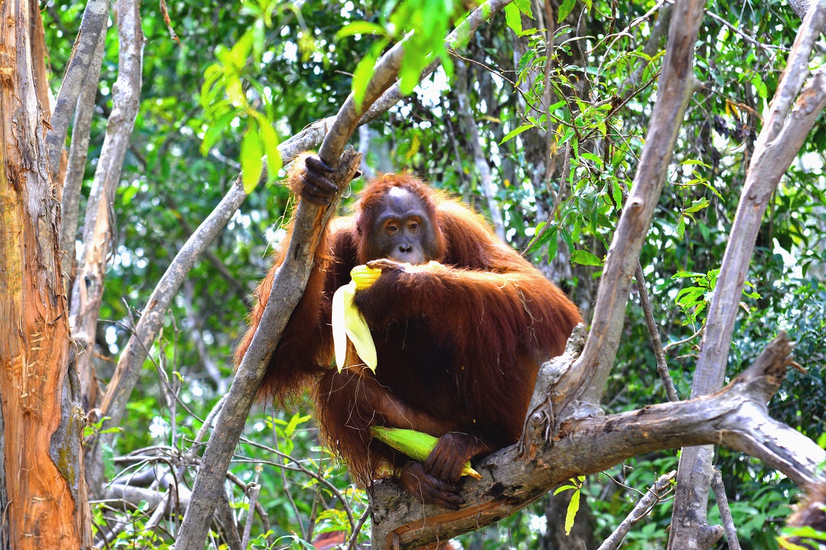 Despite being a bit less adventurous in the canopy lately, Meki has already mastered the skills needed to forage for natural foods in the forest including fruits, young leaves, flowers, and protein-rich insects. She is also highly competent at building solid nests. Meki enjoys her day-time naps as the wind gently blows overs her nest, which is typically covered with twigs and leaves formed into an umbrella shape, to protect her from the sun.