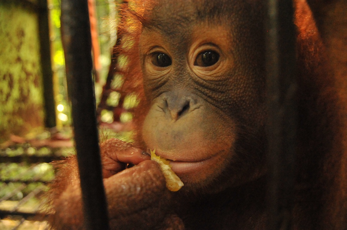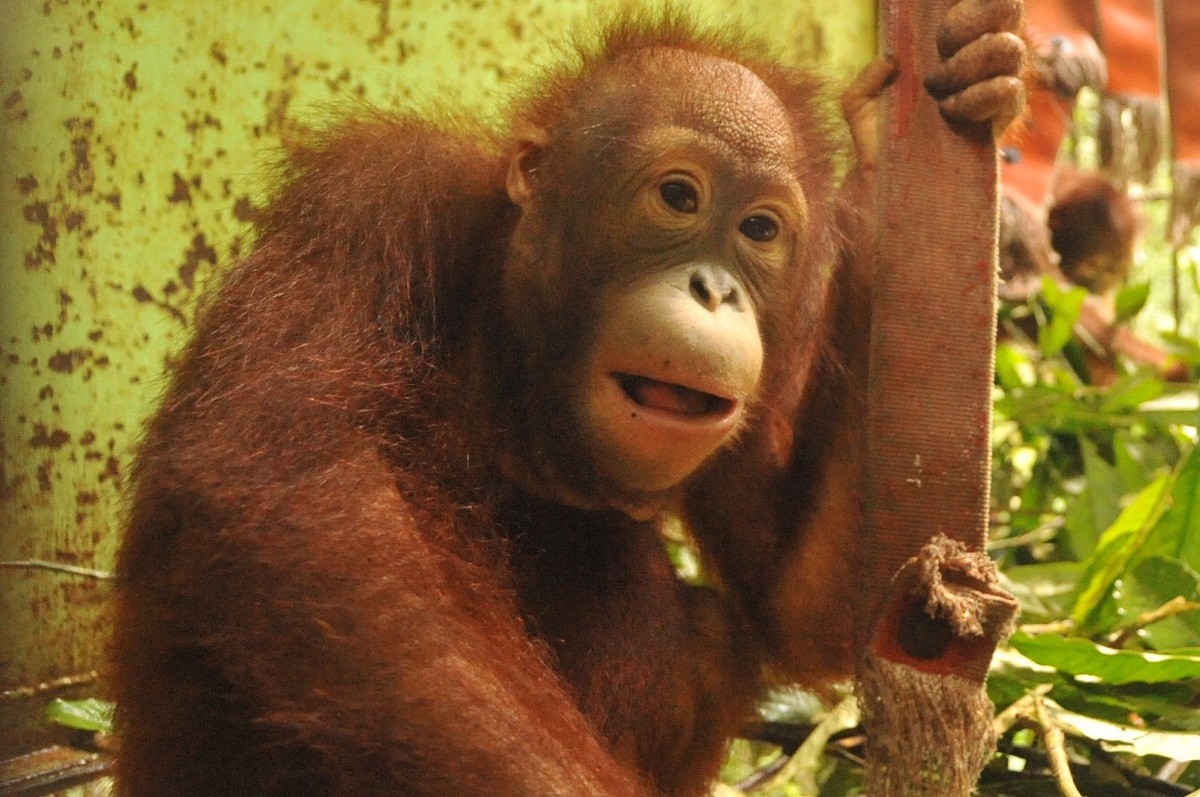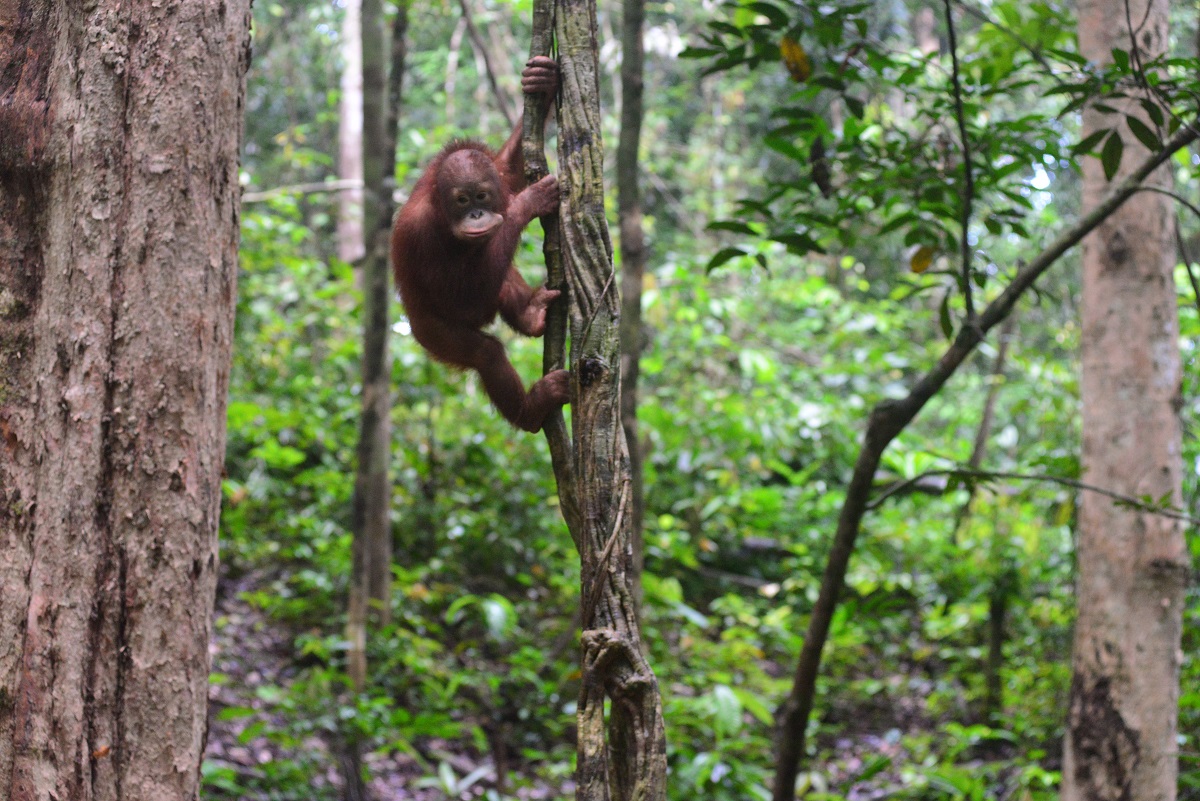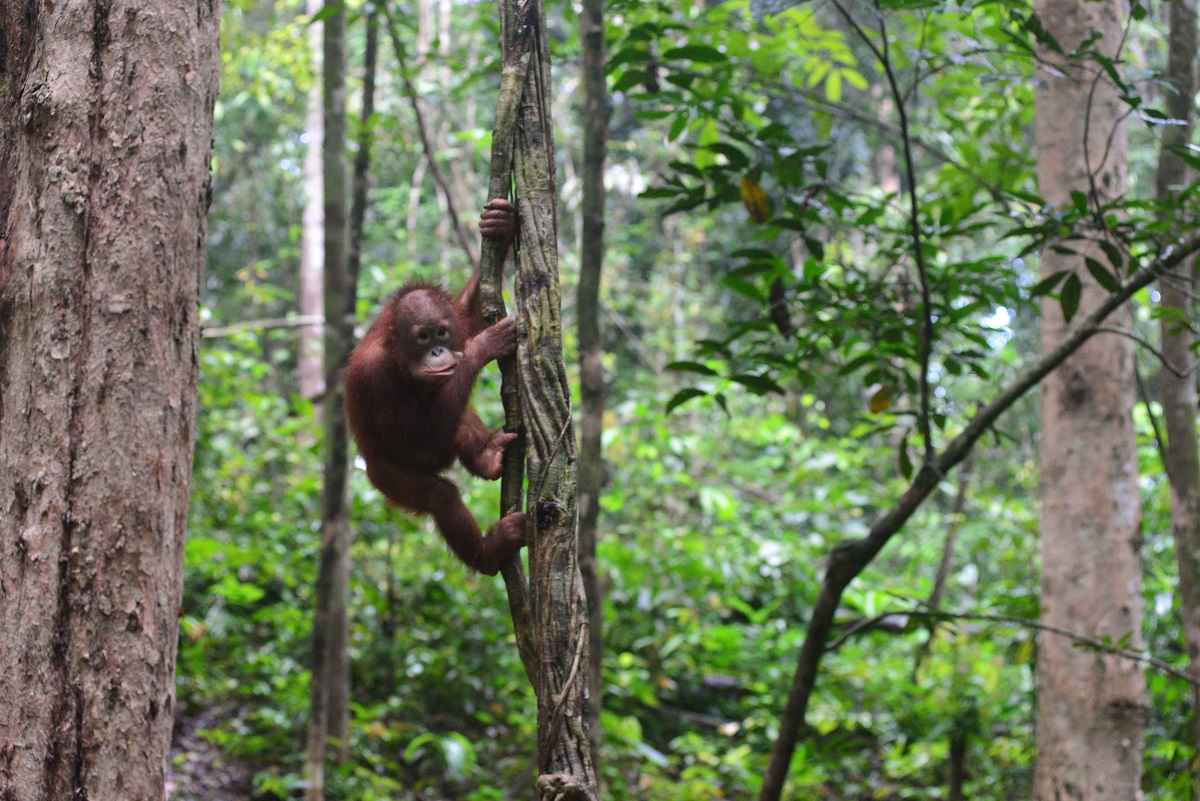 Popi arrived at our BORA rescue centre in 2016 as a tiny baby. She has continued to grow and develop, and her forest skills have improved considerably over the last two years. Popi used to prefer to play with the orangutan keepers on the ground however Popi now spends much more time climbing in the canopy thanks to encouragement from her keepers and her desire to play with the other orangutans at Jungle School. She has also become stronger and built up her fitness so she can climb for longer periods of time. She enjoys exploring and foraging for food in the forest and it can sometimes be quite difficult for her keepers to encourage her back down when Jungle School finishes.