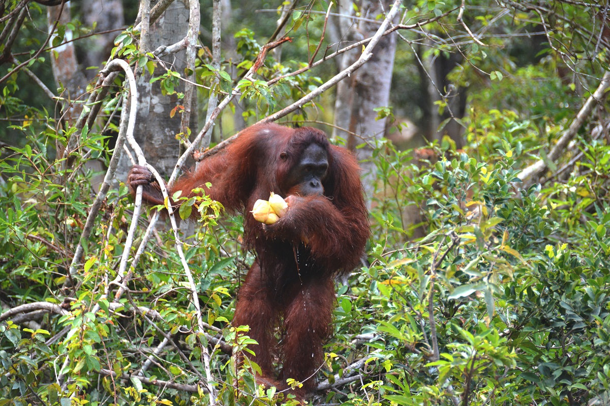 Cheeky Wigly likes to get the attention of the technicians that arrive at the island to deliver additional food for the orangutans. He will prank the technicians by throwing small stones or mud into the kelotok (motorised boat).