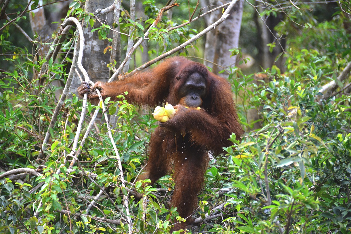 Wigly continues to develop and flourish on Kaja Island, one of the BOS Foundation’s pre-release islands in Central Kalimantan. He is known for his aloof demeanour. When in the forest, he appears most comfortable when socialising with Laura and his bestie, Ello.