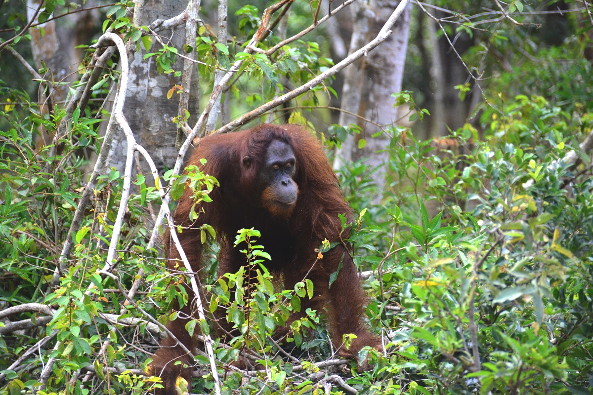 Wigly has excellent nest-building and foraging skills and eats a wide variety of the natural foods on Kaja Island. In early June, water levels of the river surrounding Kaja Island decreased significantly due to very low rainfall. Receding waters have exposed more land on the island, giving Wigly and the other orangutans more ground to play on and more grasses to eat. Wigly is in very good health and is a very handsome orangutan. As BOS Foundation continues to release more orangutans into protected habitat, orangutans like Wigly move even closer to eventual forest freedom. Keep up the great work Wigly.