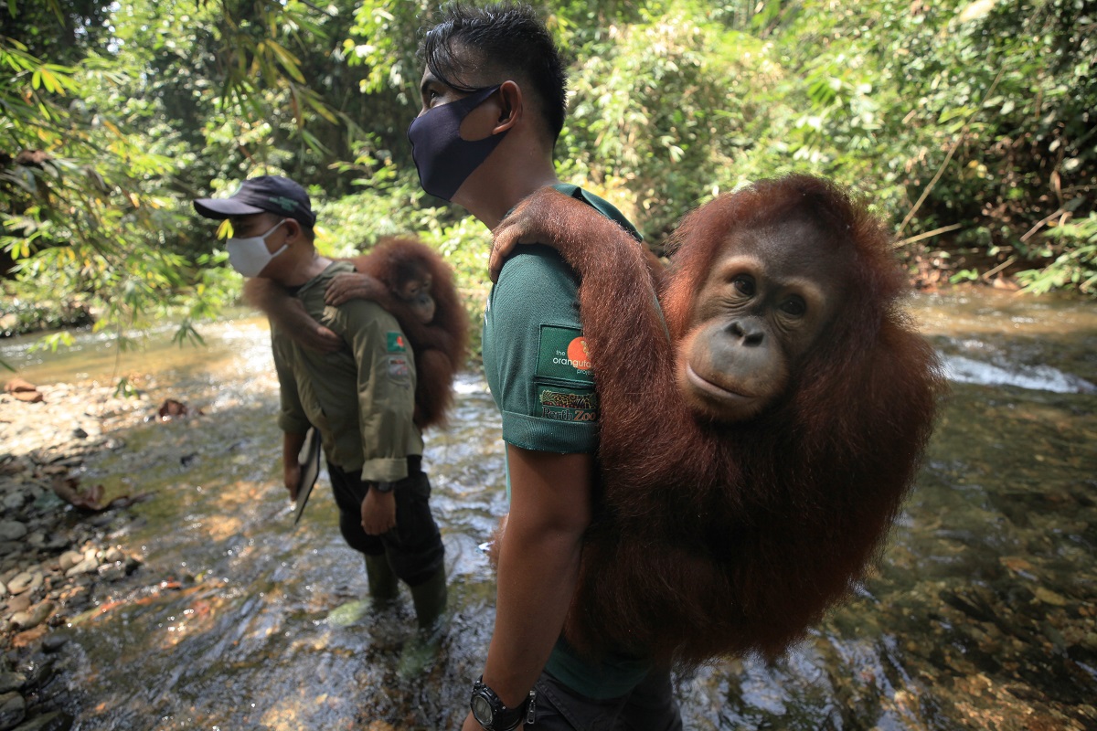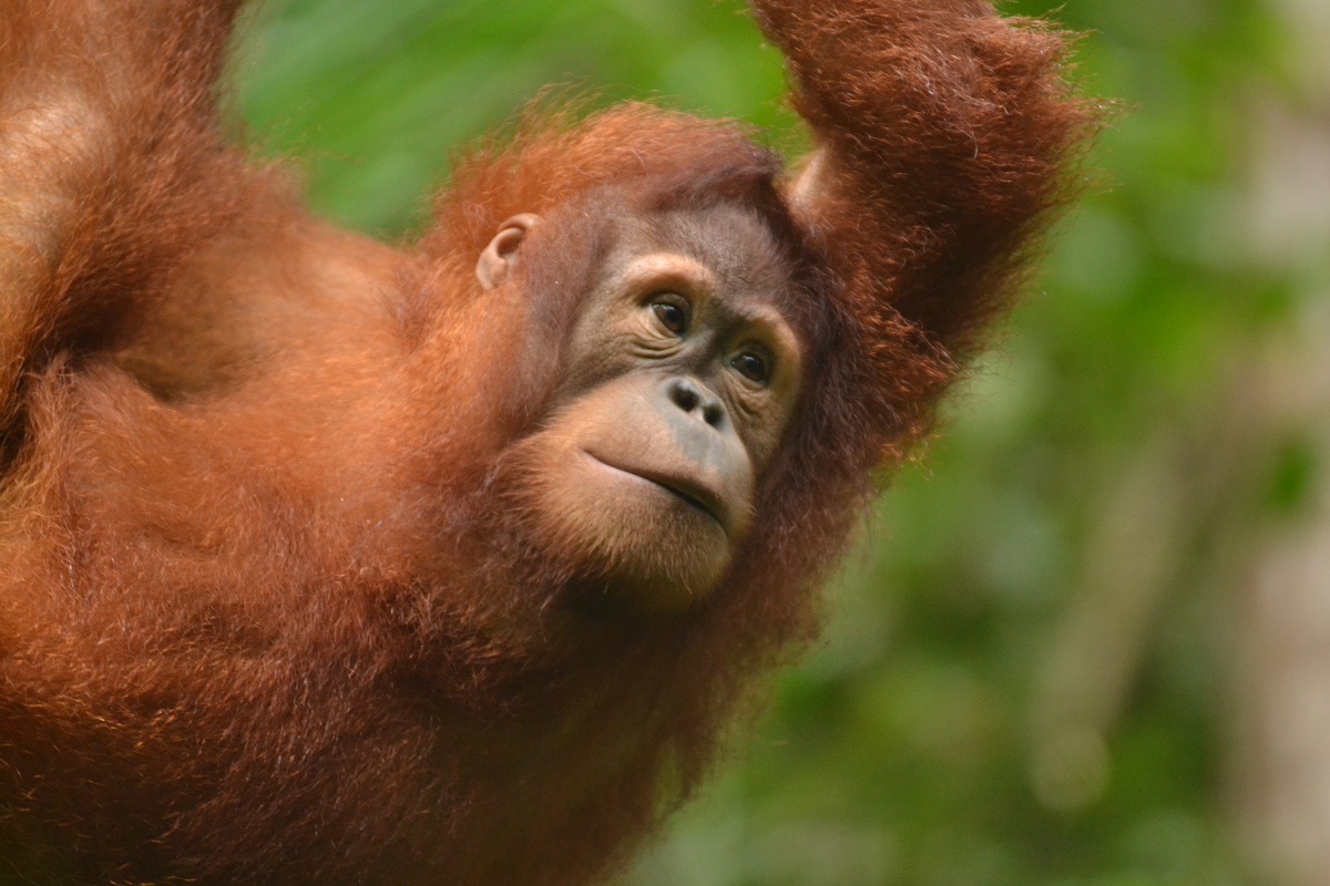 Jungle School at the Orangutan Sanctuary in the Bukit Tigapuluh Ecosystem is being conducted with strict health protocols due to the COVID-19 pandemic. It is very important that young orangutans can spend as much time as possible in the forest so they can improve their climbing and foraging skills and build up their physical fitness and confidence. Cece spends much of her jungle time foraging for forest fruits especially aro, kelampaian and liana and she also likes to eat rattan stem. Her overall activity in the forest has increased.