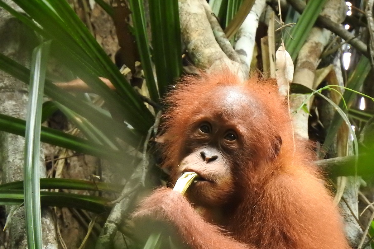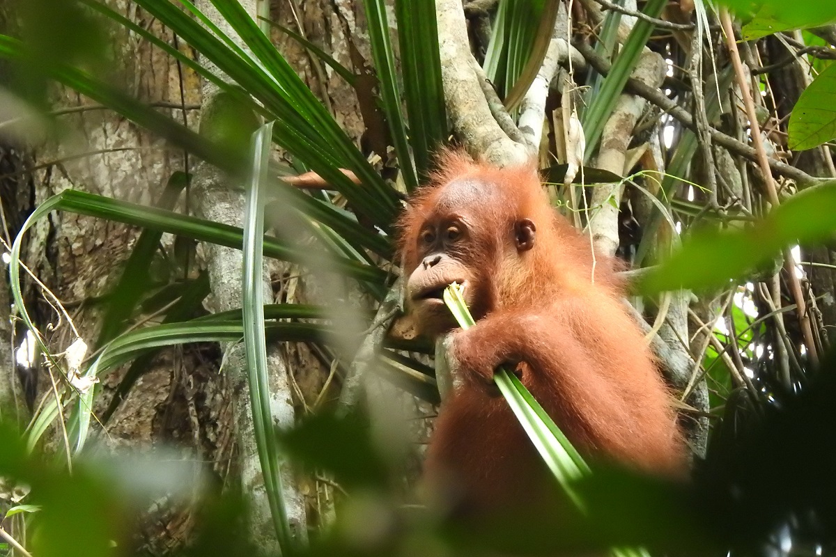 Recently, Sam has spent 53% of her active time foraging for food. 60% of her total feeding time has been spent eating various forest fruits which is excellent since fruits provide orangutans with the most calories and energy. Her favourite forest fruits include jirak and kelampaian. Sam was observed co-feeding and traveling with orangutans Evan, Tobi, Violet, Raja Tori, and Aprilia Rambo. However, Sam was afraid of Tobi, so she tried to avoid him.