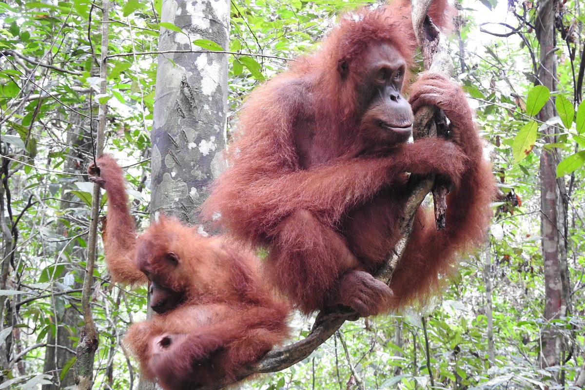 Sule continues to grow in confidence and is quite independent, spending up to 85% of his time away from Sam. He has good survival skills including foraging, climbing and nest building. He spent 58% of his active time foraging for forest foods which is excellent, and he mainly ate jirak, liana and ficus fruits. He spent about 15% of his activity budget having some cuddles and suckling time with mum Sam.
