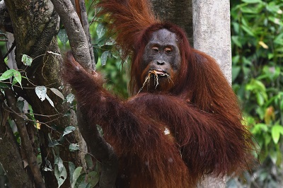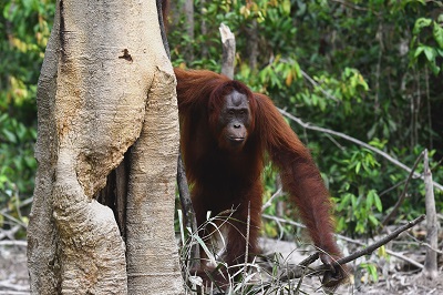 Meki lives on one of the BOS Foundation’s pre-release islands called Kaja Island. Meki and the other orangutans on Kaja Island recently experienced a huge rise in the water levels of the Rungan River.