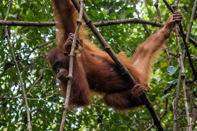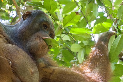 Rickina is also an excellent natural forager, often feasting on forest fruits. Rickina spends significant time in the trees and rarely comes to the ground, which is a very desirable behaviour for an orangutan undergoing rehabilitation. Rickina can be quite good at making new nests and she often builds nests from scratch rather than repairing old ones. Although Rickina likes to get close to the orangutan keepers and babysitters that she knows, she can be quite aggressive towards the people that she doesn’t know.