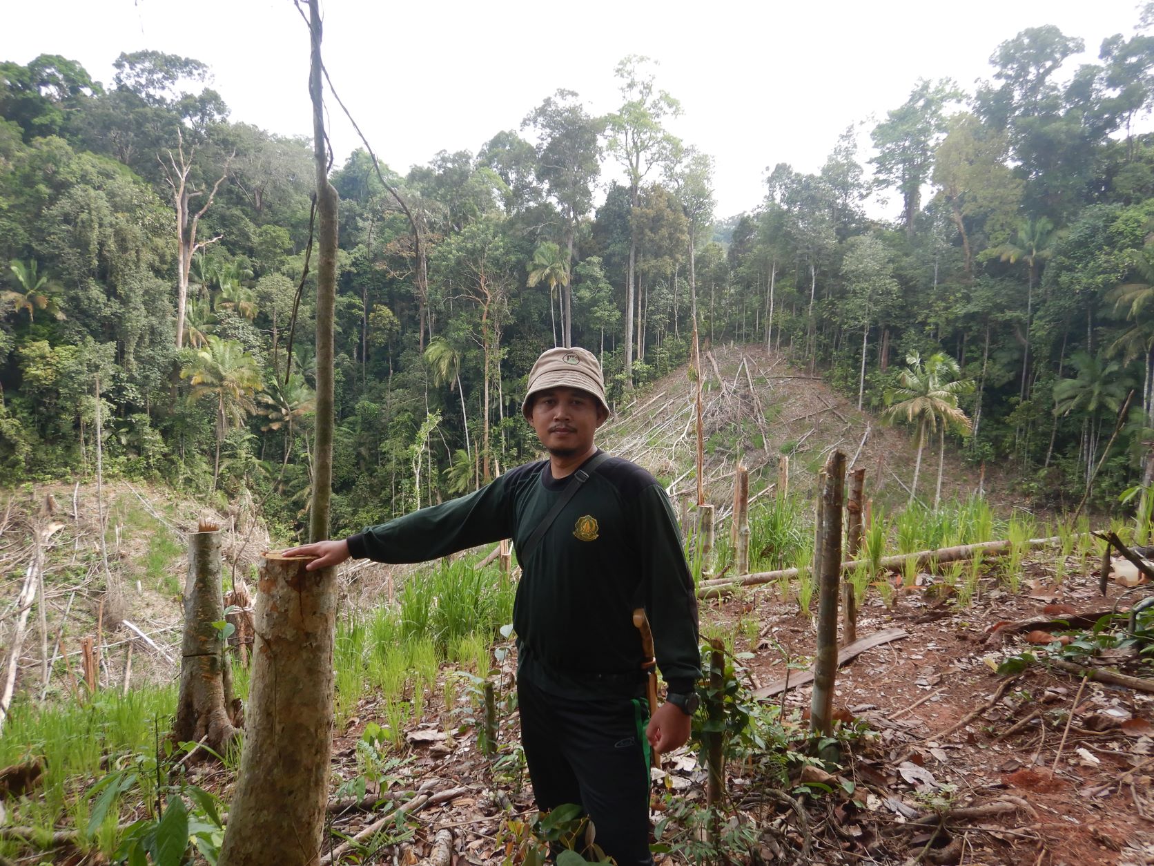 First formed in 2014, our Wildlife Protection Units (WPU) are multi-task units that focus on habitat protection and monitoring, reducing poaching, monitoring wildlife, and reducing human-wildlife conflict. The goal of our WPUs is to conserve the Bukit Tigapuluh Ecosystem as a fully functional ecosystem, securing the future for the many species who rely on it for survival. One of the key roles they play is to identify and investigate illegal logging and forest encroachment, as you can see in the image below.