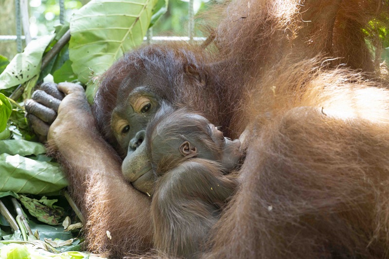 In lovely, albeit surprising news, orangutan keepers and medical staff discovered that Rickina was pregnant in April at the IAR orangutan rescue centre in West Kalimantan.