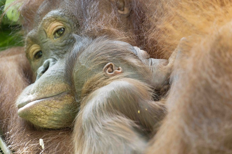 It is likely that Rickina’s age was underestimated. It is difficult to accurately estimate the age of orangutans living in human environments since these unnatural conditions impact their growth, weight, teeth, and hair growth - all the markers that are used to age them. Moreover, the age of maturation of wild and captive female orangutans varies a lot. Therefore, the IAR medical team tries their best to never rush into using contraception too early and, of course, neither too late. Hence, although Rickina was on the team’s radar to receive an implant soon, because her age was slightly underestimated, it turned out it was too late and Rickina became pregnant whilst on the island. Rickina was moved to an enclosure late in her pregnancy to ensure a safe and monitored delivery.