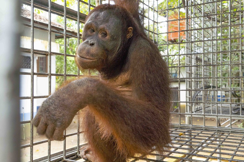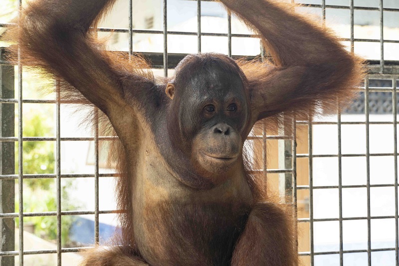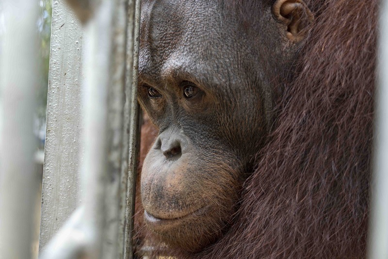 Rocky lives at the IAR orangutan rescue centre in West Kalimantan and is now 11 years old.