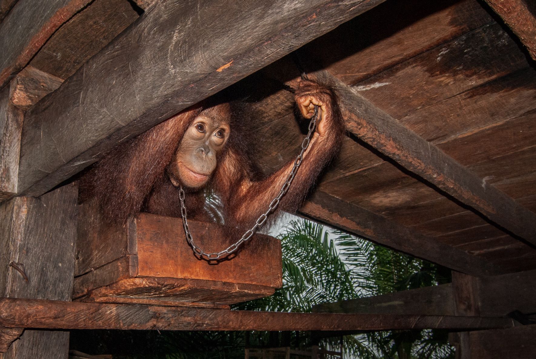 To further compound her mental anguish, she was sold as a ‘pet’ to a family in Sumatra. But she didn’t stay in the family home for long. As orangutans grow, they become bigger and stronger, and their human ‘owners’ can become afraid, sometimes resorting to methods like chaining their captive orangutans to control them. This is what happened to Charlotte.