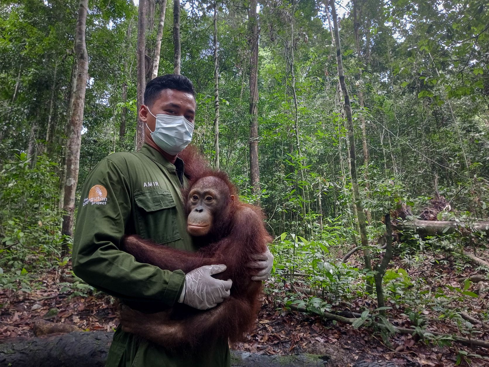 The vets say we’re all fine - so we’re off to Jungle School! And wonderful news - Amir is carrying me today! Ever since I arrived, Amir has been my favourite. He was the only one I felt comfortable with at the start. There’s a deep kindness in him that makes me feel so safe. Although I’m bigger than the little babies, I still really like to be held by the carers. The memory of being trapped for so long by a metal chain is still fresh in my mind. So when the carers are kind and gentle, it makes me feel a little bit better every time. One day I hope to forget all about that time, and be fully free in the wild.
