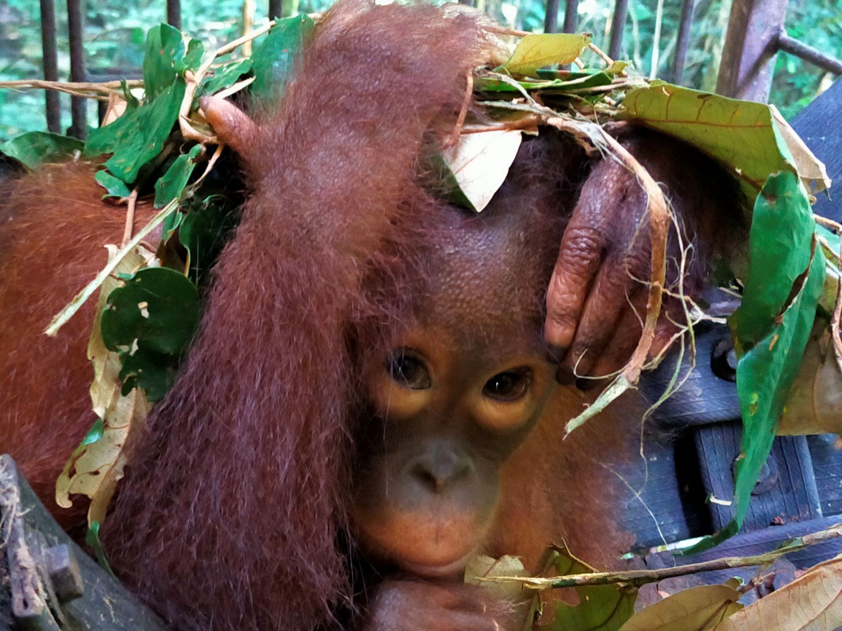 That's me sucking water off the leaves when I first arrived at the BORA rescue centre. Now, thanks to the carers teaching me, I know exactly how to eat them!