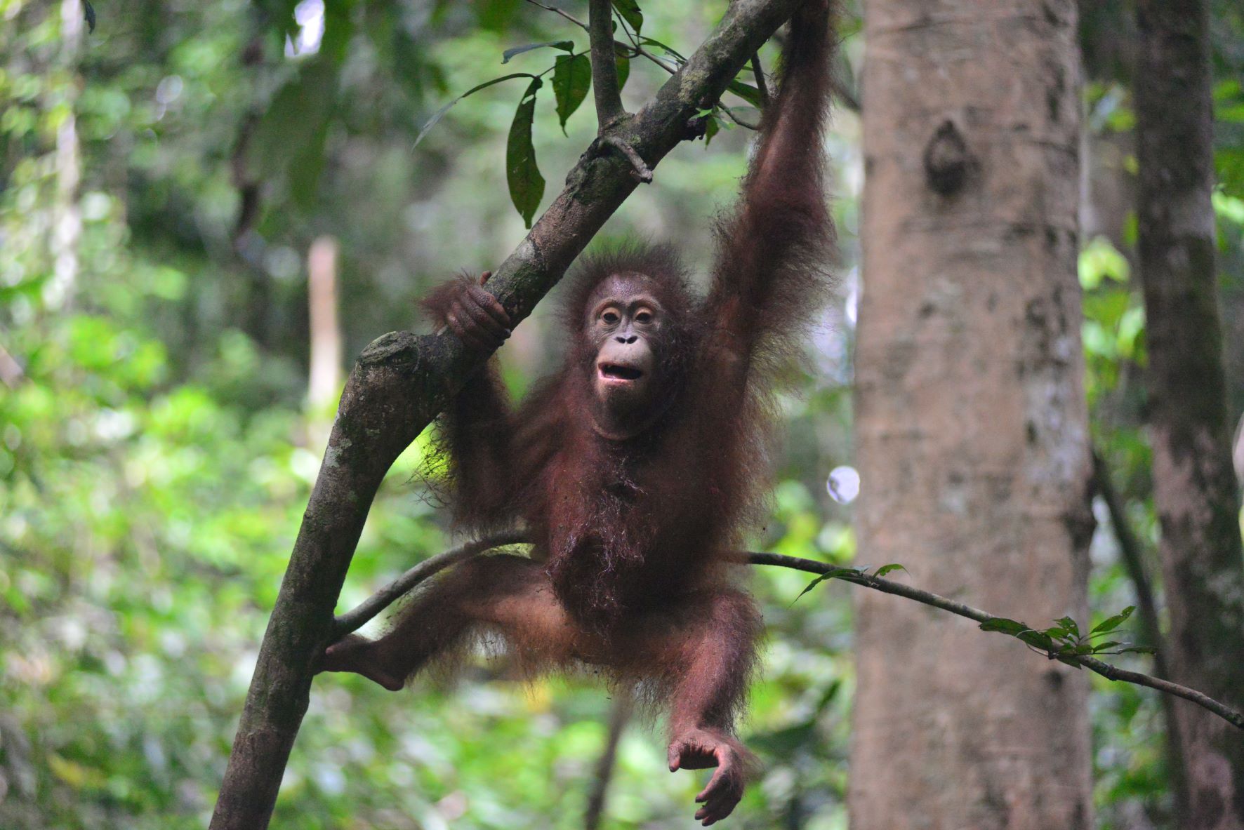 I climb down from my hammock and Devi jumps on my back. She can be so annoying, but that’s because she’s still small. But it’s also fun, and I wrestle with her and throw her to the ground. She leaps straight back up again and we play for a while. Bagus is a bit more gentle and timid, maybe because she’s even smaller than Devi. They were both already at the centre when I arrived last year, so I can’t even imagine how little they were when they arrived!
