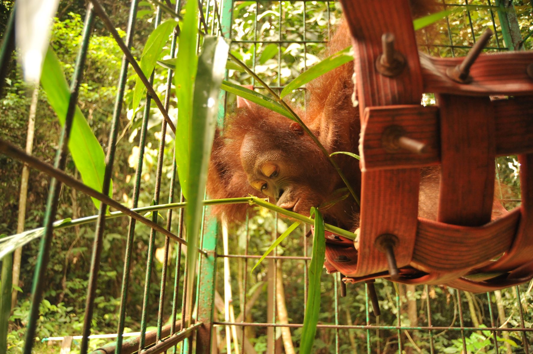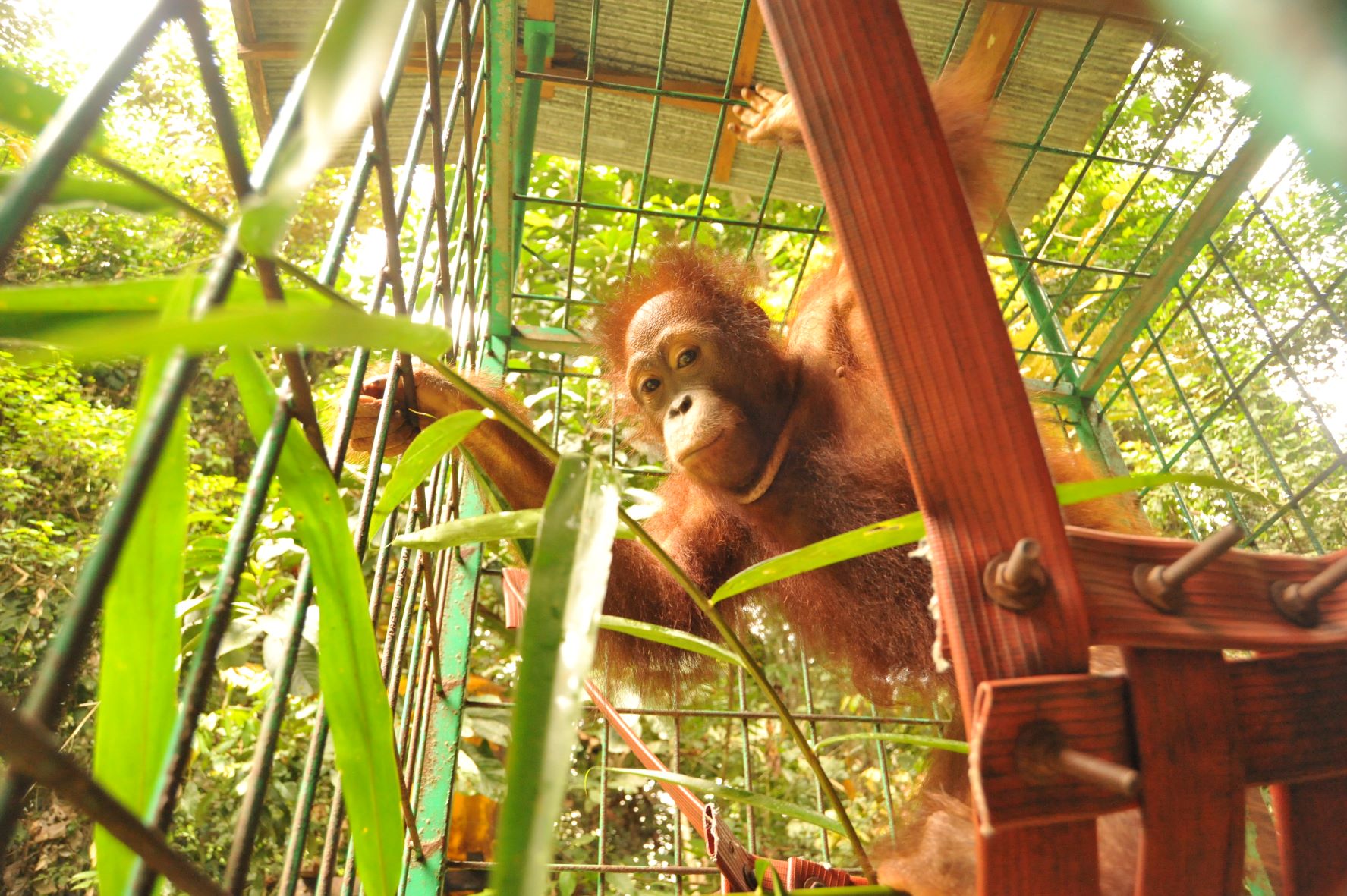 I wake up to the sounds of gibbons and the forest. I lie in my hammock on the soft leaves, listening for a little while to the sounds of the rescue centre as the carers and vets arrive. My bunk mates Devi and Bagus are younger than me, and they sometimes make noise in the morning as they play among the hammocks and leaves. My stomach growls as I start to get hungry for breakfast. I hope we’ll have watermelon!