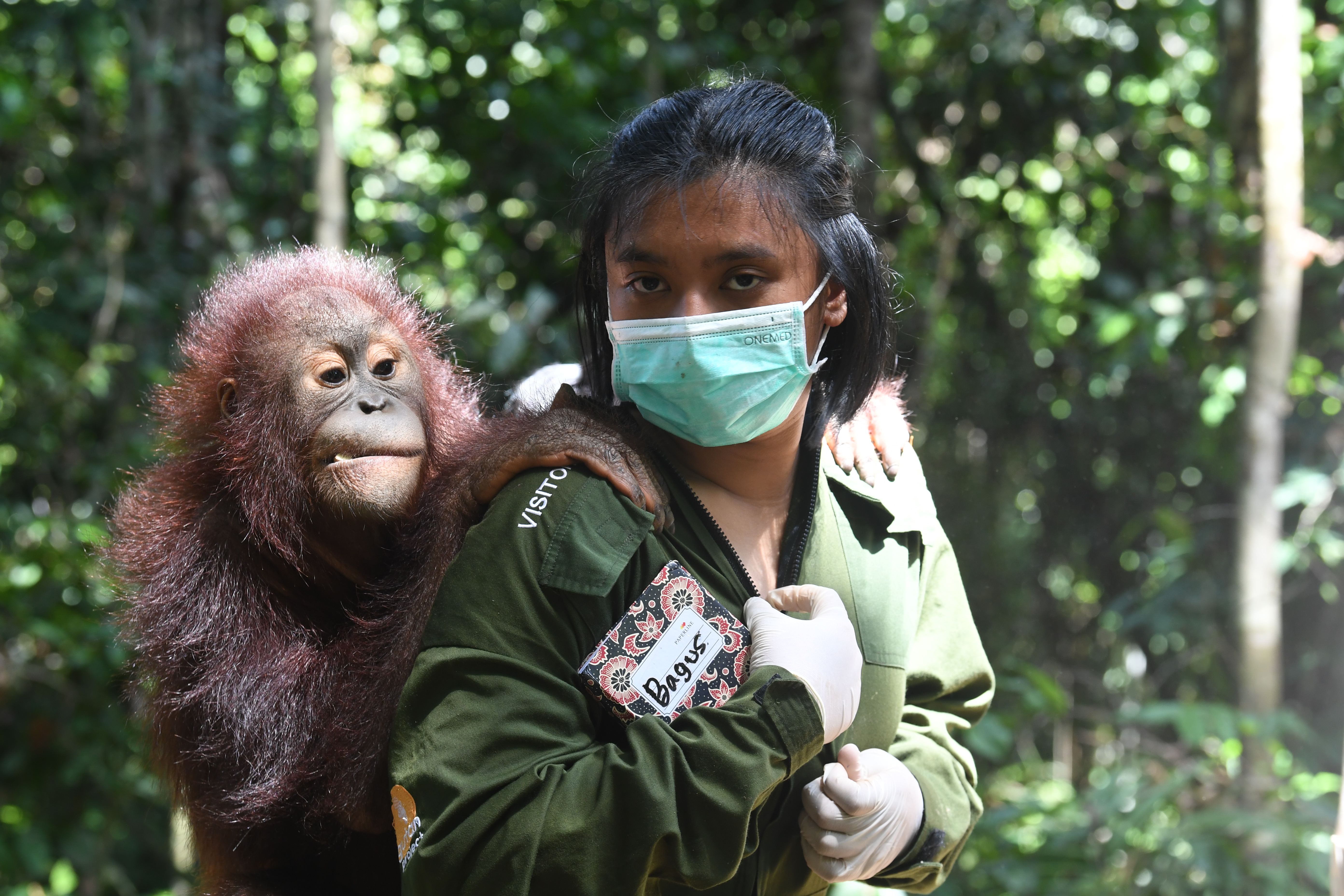 The veterinarians at our rescue centres are vital to the long-term wellbeing of the orangutans at our care centres. They work at our medical clinics in the SRA and BORA centres, conducting regular tests and checks of the orangutans’ health. They also provide urgent medical care when orangutans are rescued and many orangutans owe their survival to the wonderful female vets. Below is Andhani, one of the vets working with our partner FZS in the Bukit Tigapuluh Ecosystem.