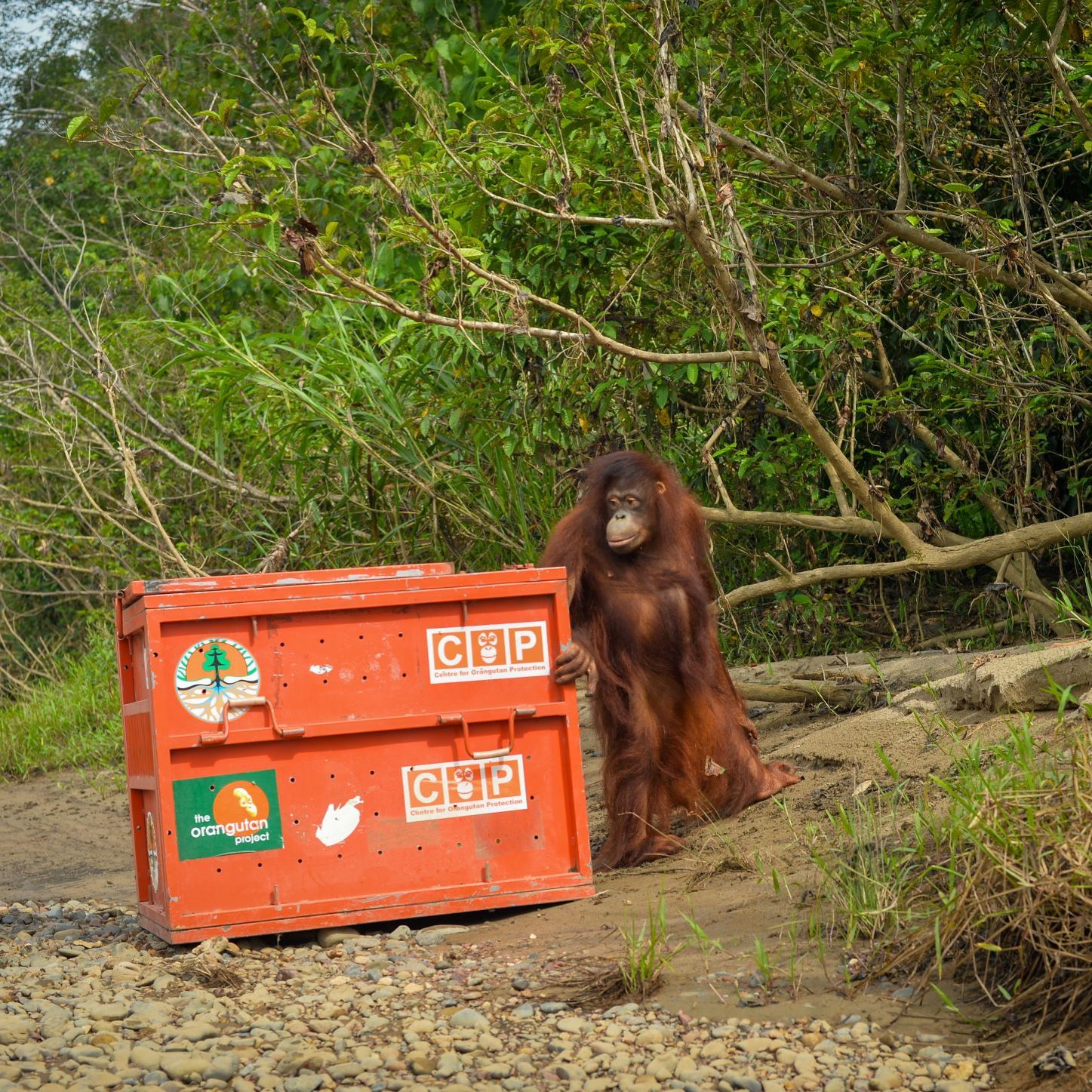 Kola was one of the first orangutans to be repatriated from Thailand, where she was born fourteen years ago, and now she’s tasting freedom on a pre-release island.