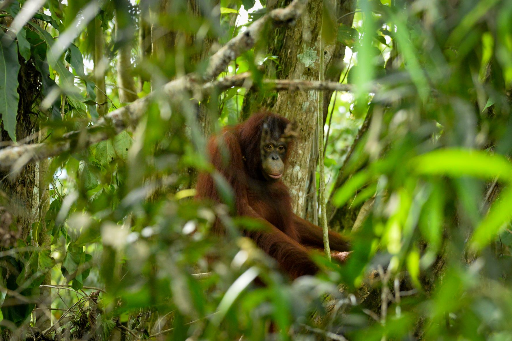 Before her repatriation to Borneo in 2019, Kola hadn’t seen other orangutans. She was surrounded by humans during her early years, without care and not able to learn from other orangutans. Living in captivity and without appropriate care, she developed abnormal behaviours, including walking bipedally with her arms folded. This is an example of a behaviour we can see in orangutans who haven’t been able to develop and learn in the forest from their mothers.