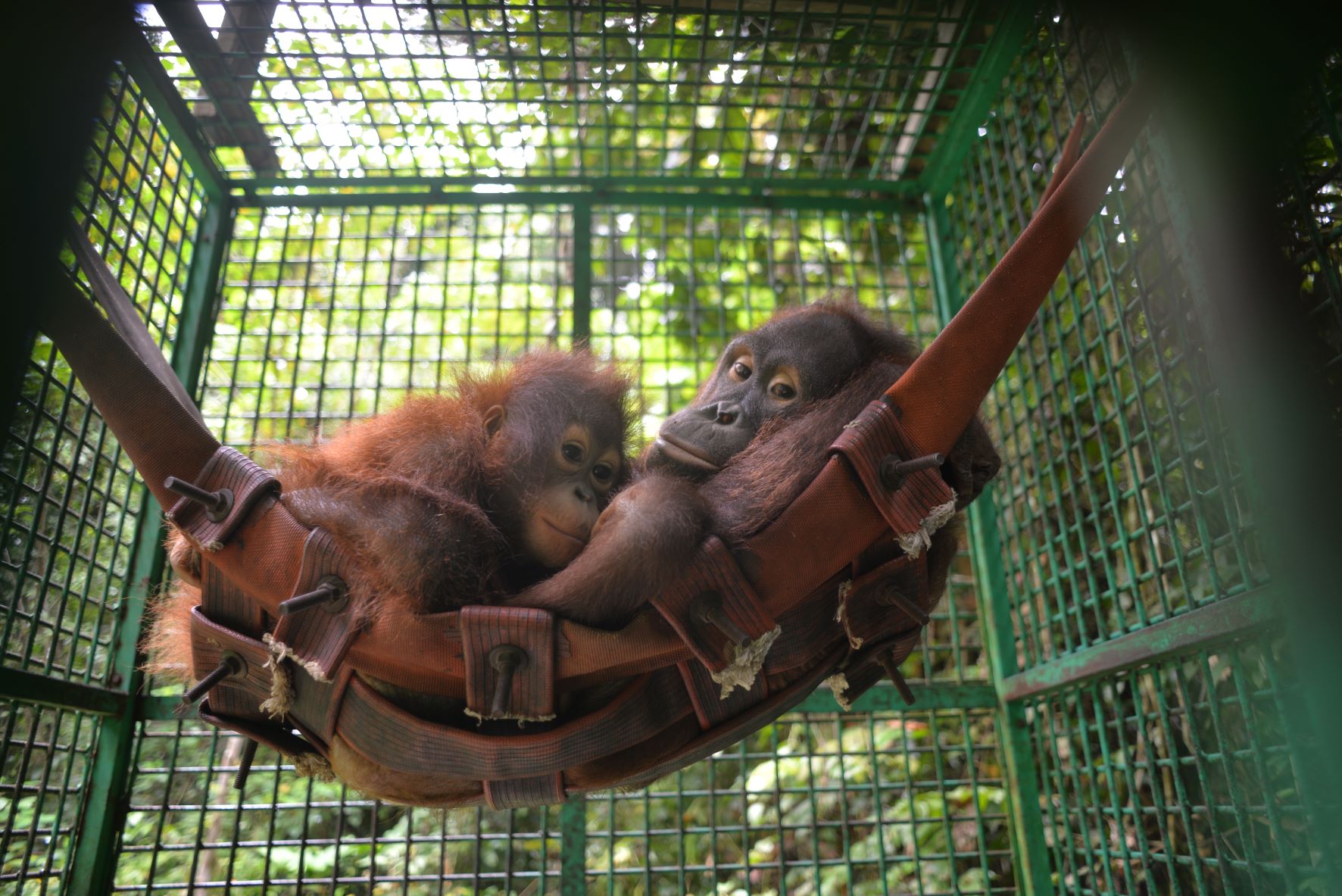 Septi and Eboni have also formed a special, deep bond. They’re in the same enclosure in our new Bornean Orangutan Rescue Alliance (BORA) rescue centre. When Eboni was rescued in May 2022, she was quite wild and angry. She bit Hardi, our TOP Field Manager, and screamed when she was put into the transportation crate. Eboni’s wild nature suggested she’d spent most of her young life with her mother. So it was only natural that, instead of bonding with human carers, she’d be introduced to Septi, who could care for her and teach her what she needed to learn.