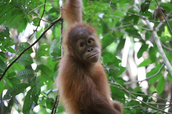 Sudin, along with his best friend Siti, are both doing great at the Sumatran orangutan rehabilitation program in the Bukit Tigapuluh Ecosystem in Sumatra.