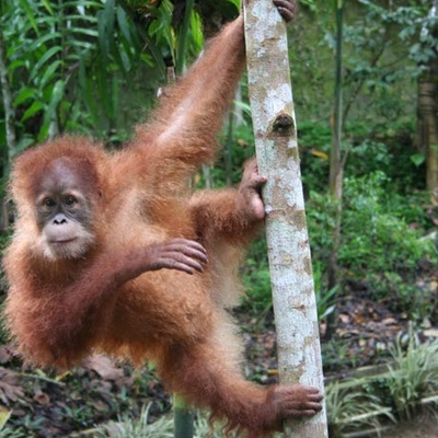 Before they can be released to the wild, orangutans have to learn how to survive in the forest – a ...