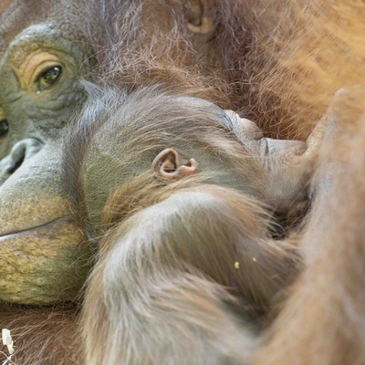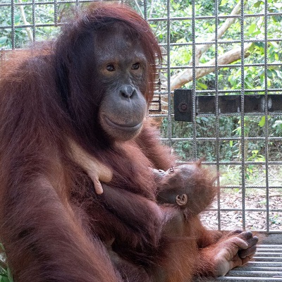 Rickina and her infant, Ricko, are thriving in their forest enclosure, which they share with fellow mum Senandung and her ...