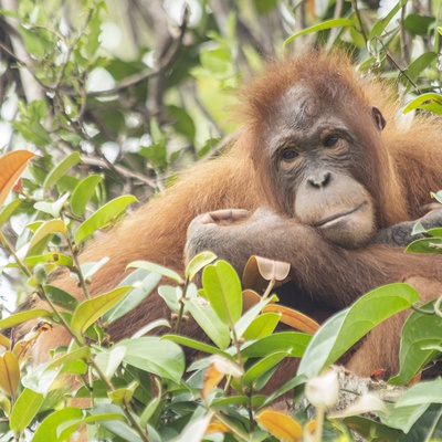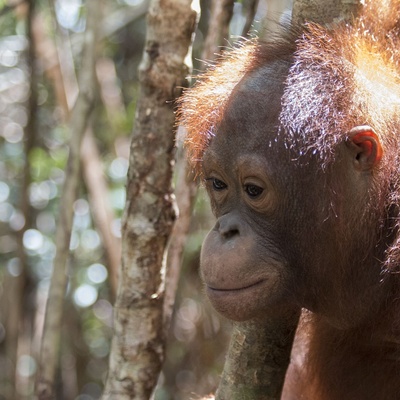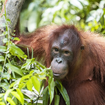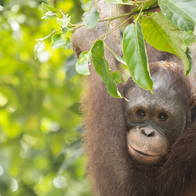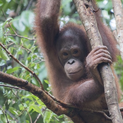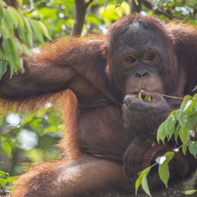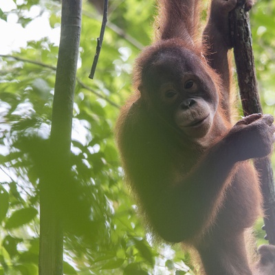 The handsome Rocky spends much of his time high in the canopy either traveling or socialising with other orangutans on ...